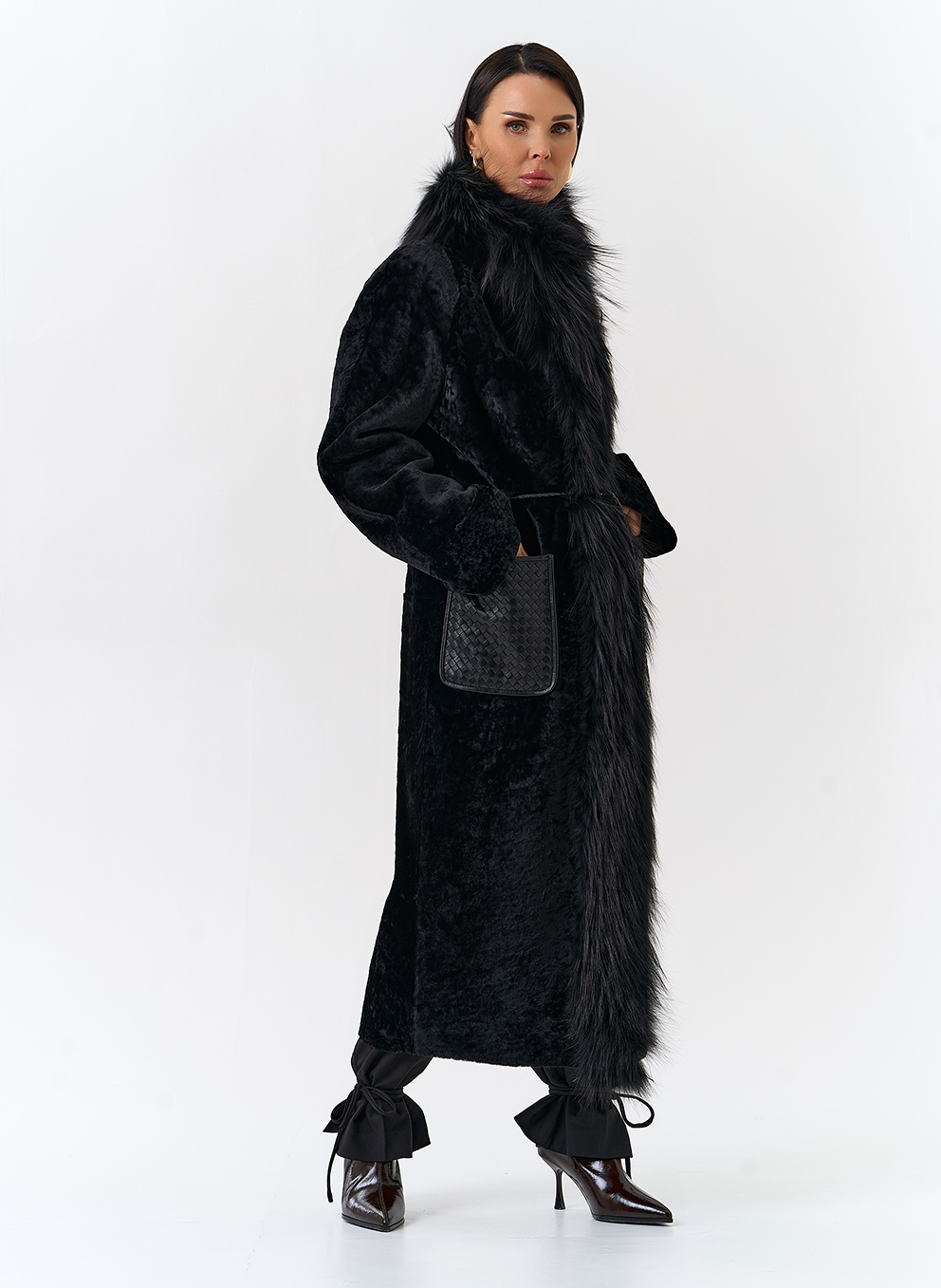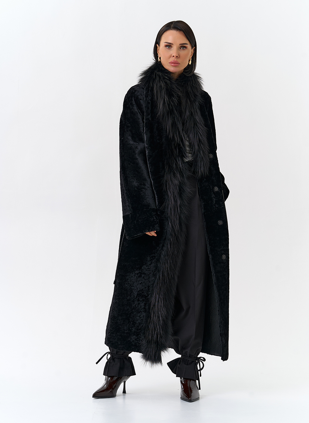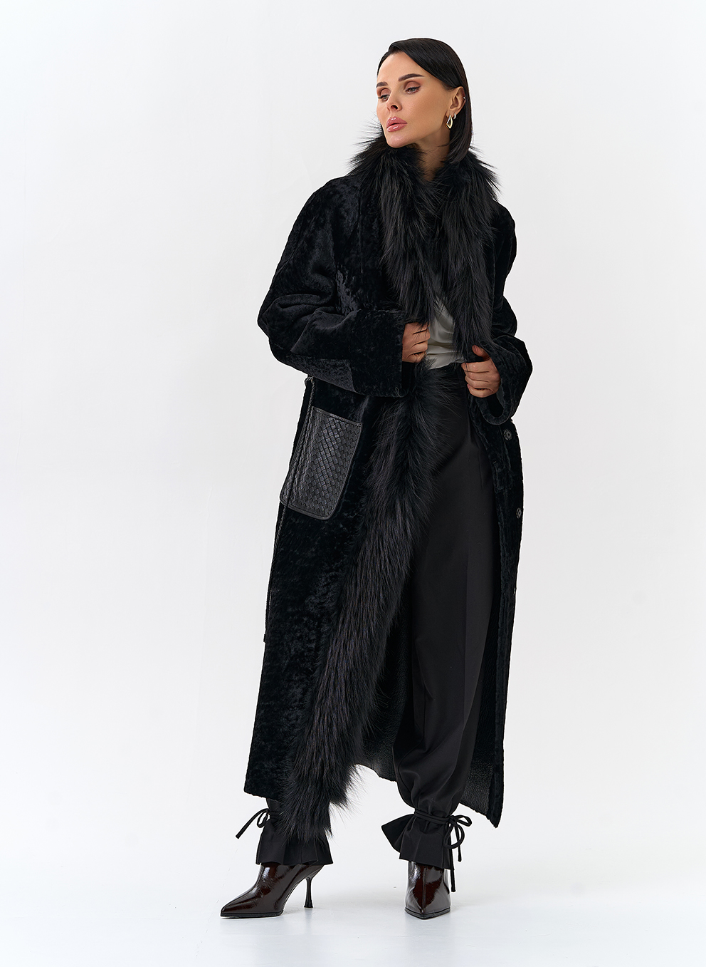 Вид ворота - апаш, отделка чернобурая лиса, цвет - черный