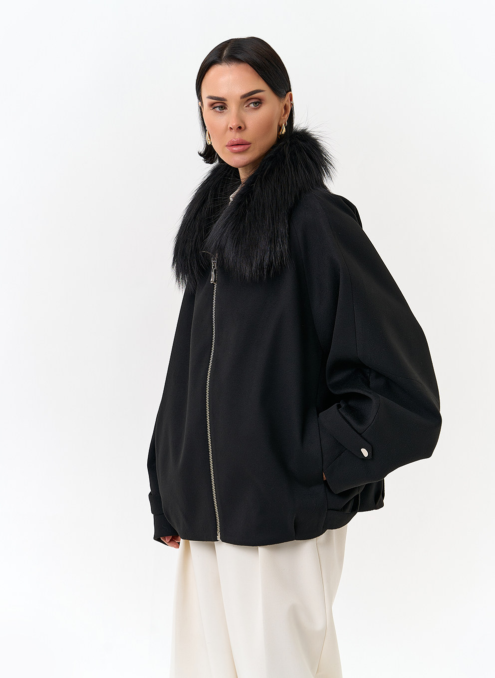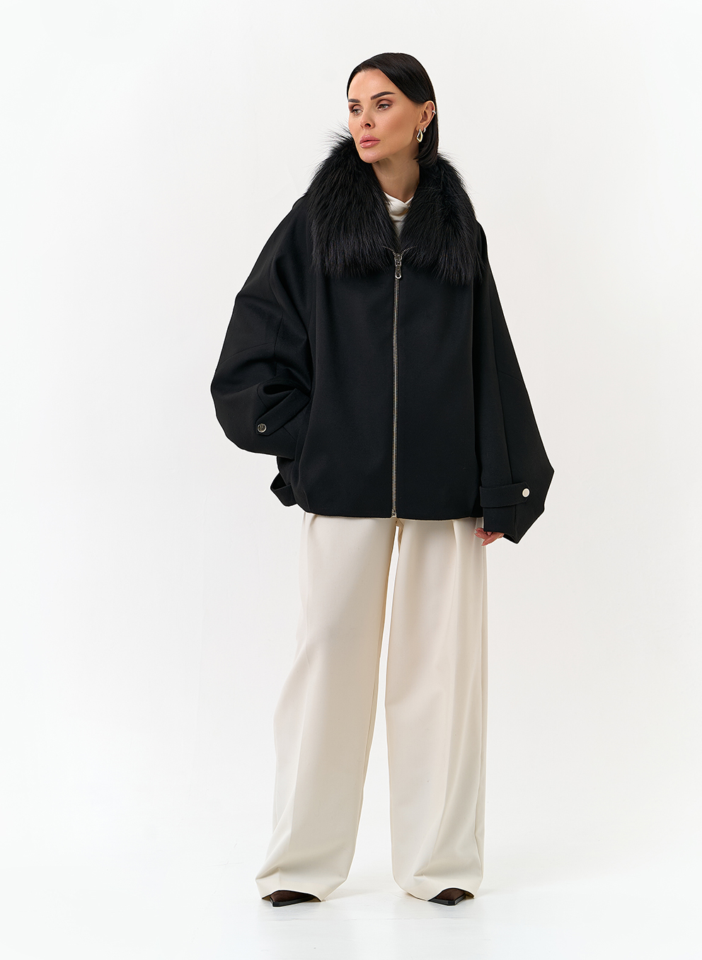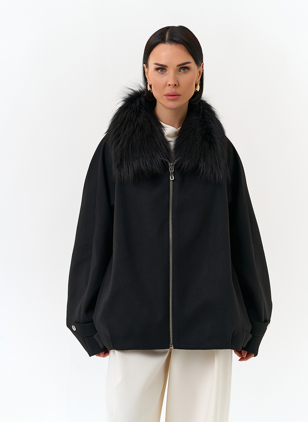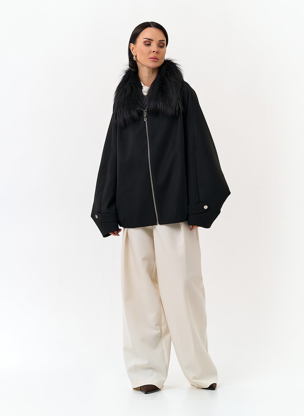 Отделка воротника - мех лисы, цвет черный