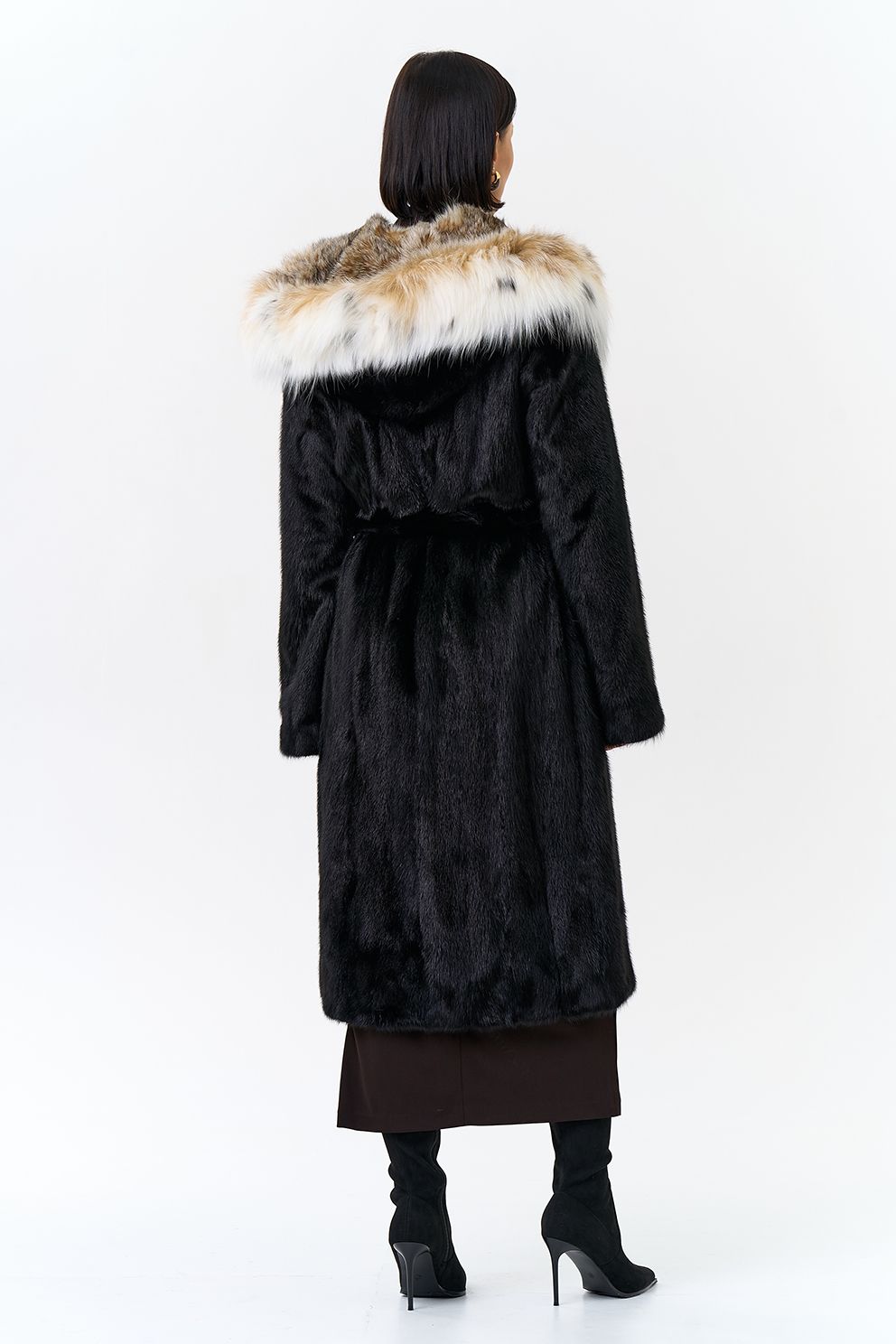 Норковая шуба с капюшоном с отделкой из рыси